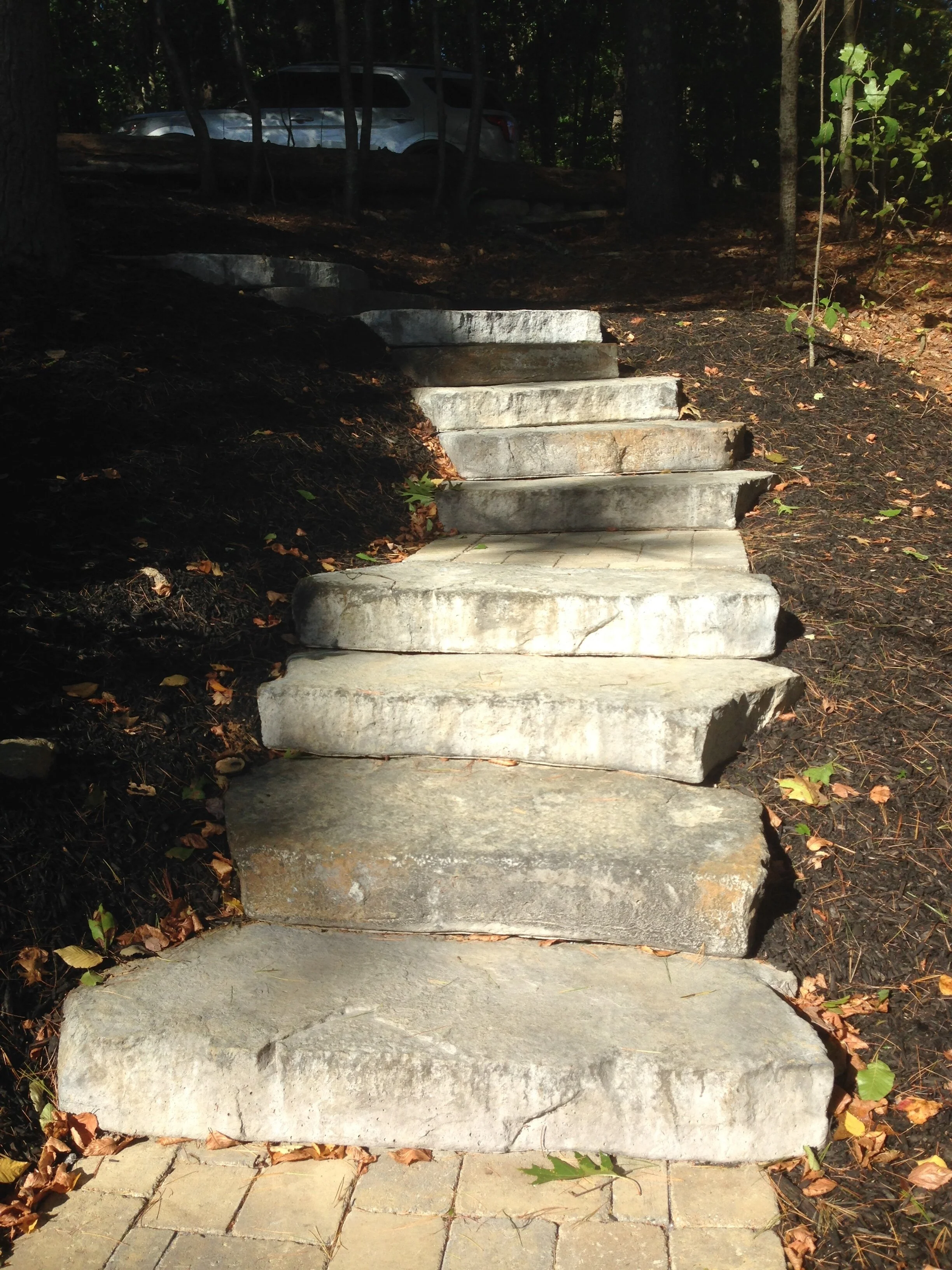 When exiting the car, your guests can move seamlessly from the parking area to the walkways since they have the same level of illumination, making them safe and convenient. Your landscaper can transform your driveway and walkway surfaces with a beautiful, hand-selected stone surface to marry all of the outdoor spaces into one compelling aesthetic.