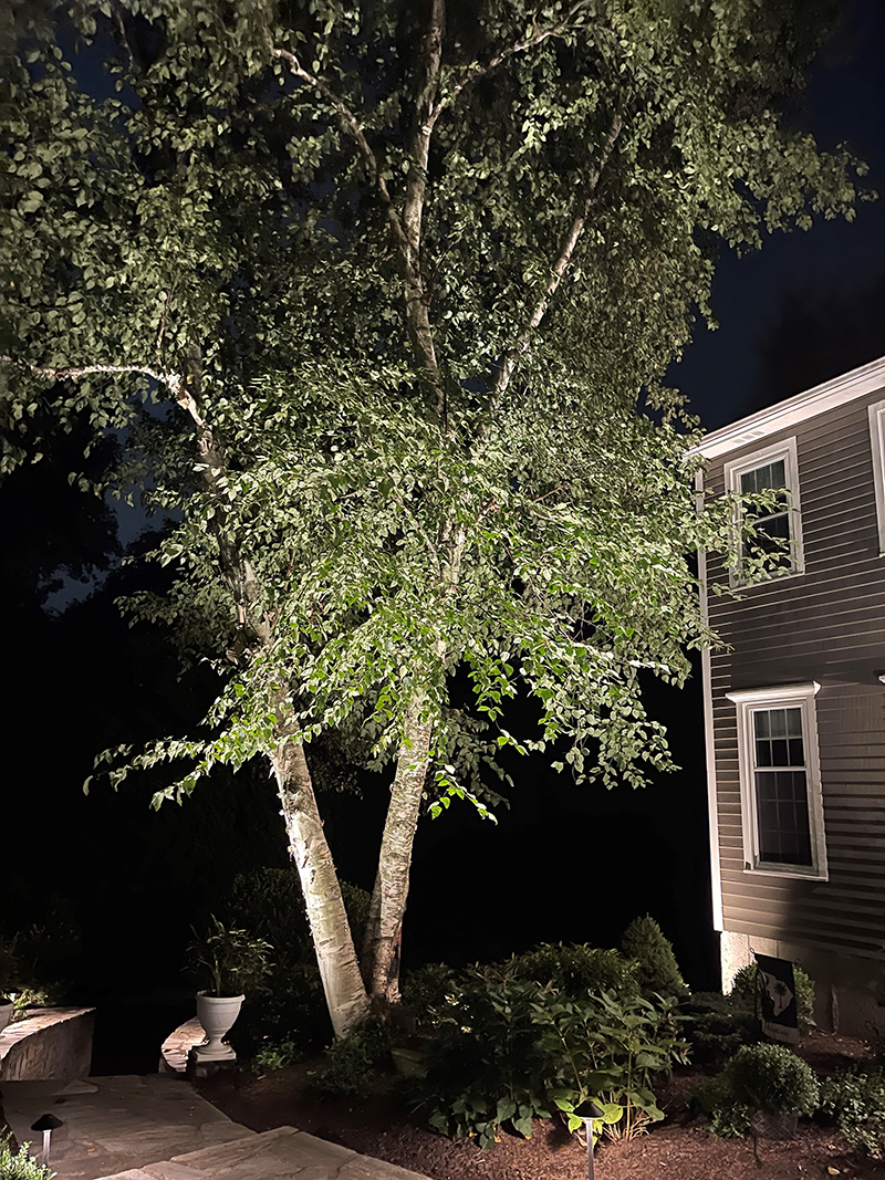 Thoughtful outdoor lighting can transform your Sudbury, MA property into a stunning spectacle after sunset. Whether highlighting the front entrance with welcoming spotlights and custom copper lanterns or enhancing the texture of majestic trees and bold floral colors in landscape beds, professional outdoor lighting design adds both beauty and functionality to your home.
