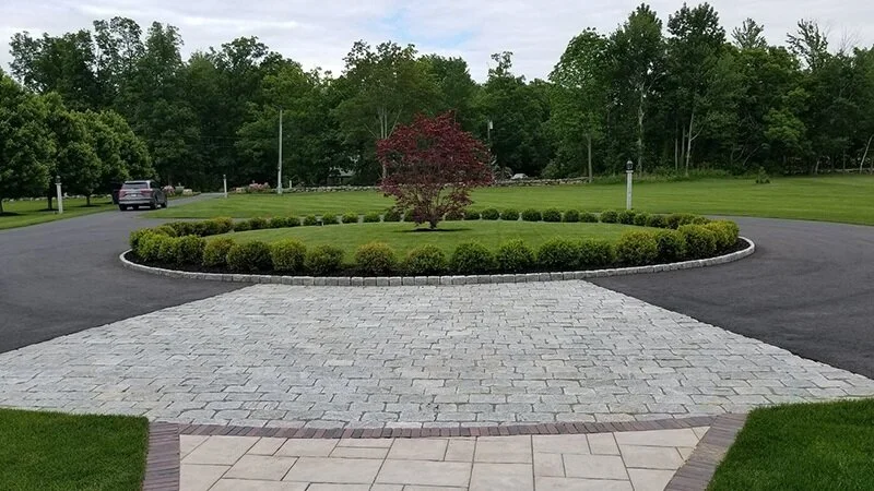 A stunning new driveway, convenient turnaround, and winding walkways adorn this majestic front yard transformation that unlocks and shows off a home’s true potential.